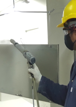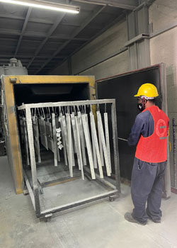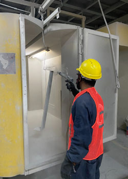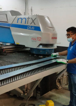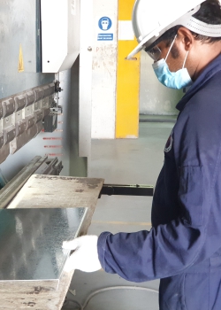 - After necessary pre-treatment, the panels are powder coated in in-house automated High Precision Powder Coating Booths and oven baked at 250°C. This ensures minimum paint thickness, no rusting and scratch resistant painting of panels.